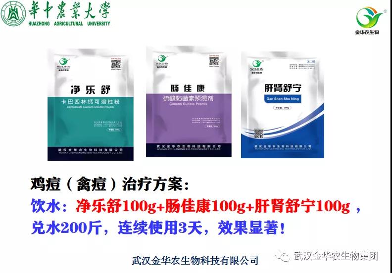 凈樂舒100g+腸佳康100g+肝腎舒寧100g ,兌水200斤,連續3天,效果顯著!