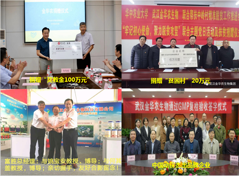 ? ? 我們的使命始終是為我國動保行業的發展做出應有的貢獻,為國家為社會做貢獻,為協助高校大力培養人才,捐贈“100萬元獎教金”、公司董事長親自多次下鄉進行扶貧工作、多次捐贈偏遠山區“鄉村建設款”累計20萬元,積極主動擔當作為,為各大農牧集團、養殖龍頭對接合作,戰略合作金額高達2000萬元,對大型農牧集團、規模化養殖場、農業養殖合作社等56家,全面技術指導與提供優質高效動保產品,為養殖戶保駕護航......公司在發展前進的征途中始終以貢獻社會、服務社會作為最終使命!