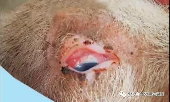 2、慢性發病過程較長,糞便干燥、尿黃,眼睛分泌物成紅色淚斑樣,體溫忽高忽低,逐漸消瘦,皮膚先發紅,再發白(貧血造成),最后開始出現黃疸;豬群消瘦,生長遲緩;