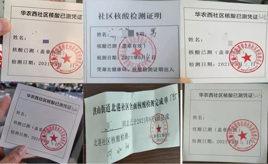武漢金華農(nóng)生物員工核酸檢測(cè)憑證(部分)