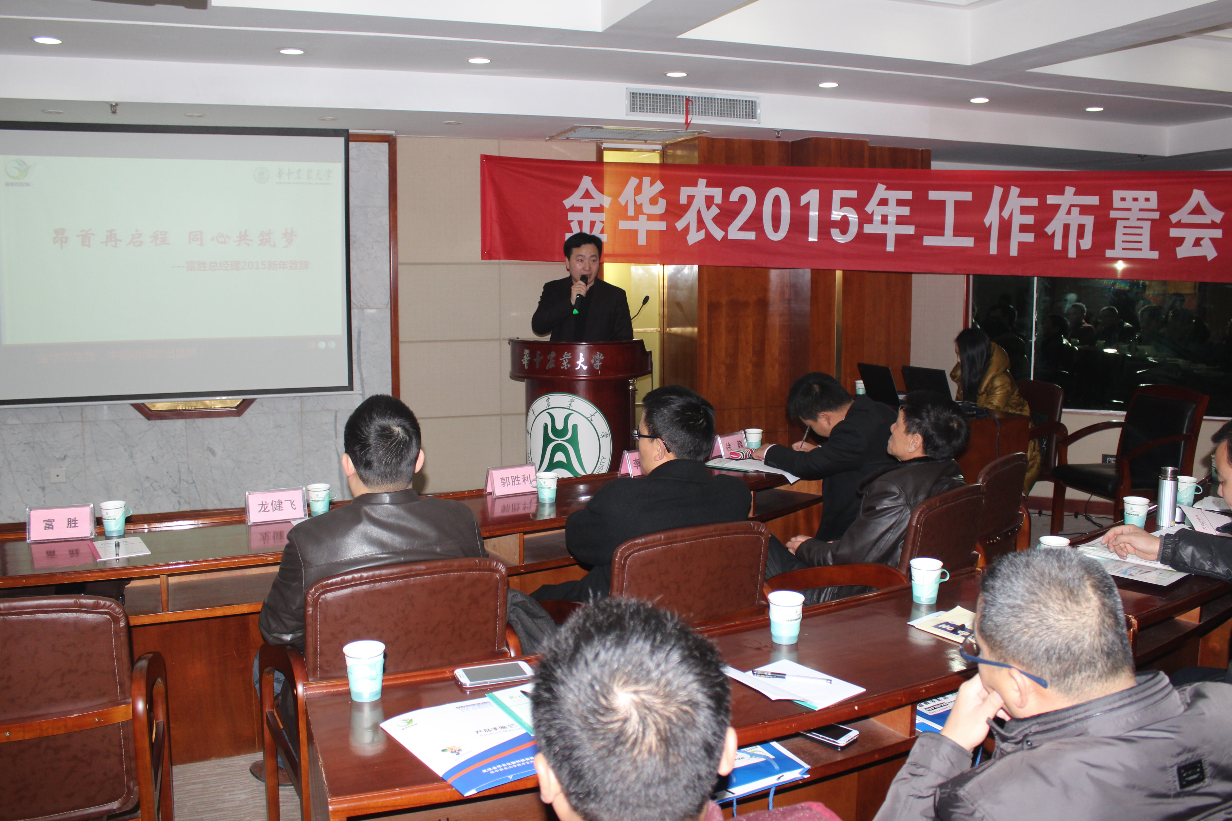 ?思想是行動的指揮棒!思想有多高,決定事業(yè)的發(fā)展能夠走多遠。在這個“攜作融合”的全新時代,金華農(nóng)人要以更大的氣魄和包容的胸懷,博采眾長、兼收并蓄,走聯(lián)合發(fā)展之路,聯(lián)合最好的研發(fā)支持、聯(lián)合最好的合作伙伴、聯(lián)合最優(yōu)的渠道網(wǎng)絡、聯(lián)合最優(yōu)的人才團隊,形成巨大的合心力,同心共筑偉大“金華農(nóng)動保產(chǎn)業(yè)”夢!金華農(nóng)承載的不是某個人的夢想,金華農(nóng)不是哪個人的金華農(nóng),她屬于你、我,屬于我們大家,承載著大家對共同事業(yè)的追求和成功的愿望,只要你足夠努力、足夠勤奮、足夠正能量、足夠敢于擔當,金華農(nóng)就一定能為你提供一方施展才華的舞臺。回顧曾經(jīng)經(jīng)歷的波折坎坷,當公司的業(yè)績在短短幾年之內(nèi),從無到有,從幾十萬到幾千萬到制定更高的目標;當公司的團隊從少到多、從孱弱到優(yōu)良到精兵強將各領風騷;當我們事業(yè)的目標跨越一個個高度,從不敢想到敢想敢拼……我們看到,無數(shù)個發(fā)展夢想在金華農(nóng)得到實現(xiàn),無數(shù)個不可能在金華農(nóng)變成了現(xiàn)實,金華農(nóng)的優(yōu)秀同仁們,是你們精誠團結、攜手并進,一次次將銷售業(yè)績刷新,一次次將夢想刷新!2015年,我們要為擁有夢想的自己加油!為擁有夢想的團隊加油!為擁有夢想的金華農(nóng)加油!