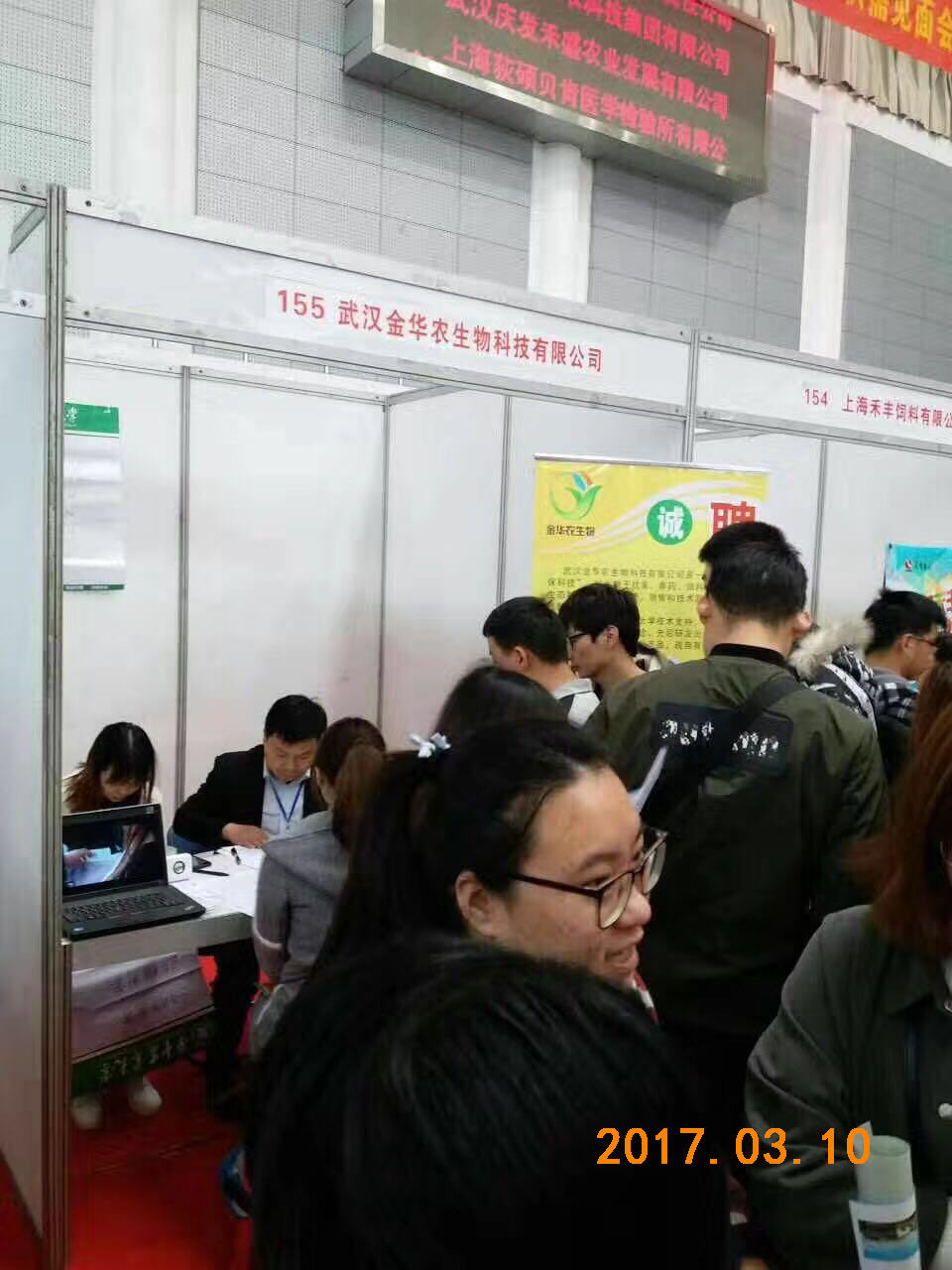 3月10日,武漢金華農生物應邀參加華中農業大學春季畢業生供需見面會。隨著公司規模進一步擴大,發展步伐進一步加快,原有規模不能滿足公司發展,增設部門和擴充人手勢在必行。武漢金華農提供的多個崗位受到華農學子的熱烈追捧,爭先恐后前來咨詢和面試,競聘各種崗位。經過現場面試和篩選,公司在本次招聘會上收獲人才頗豐!