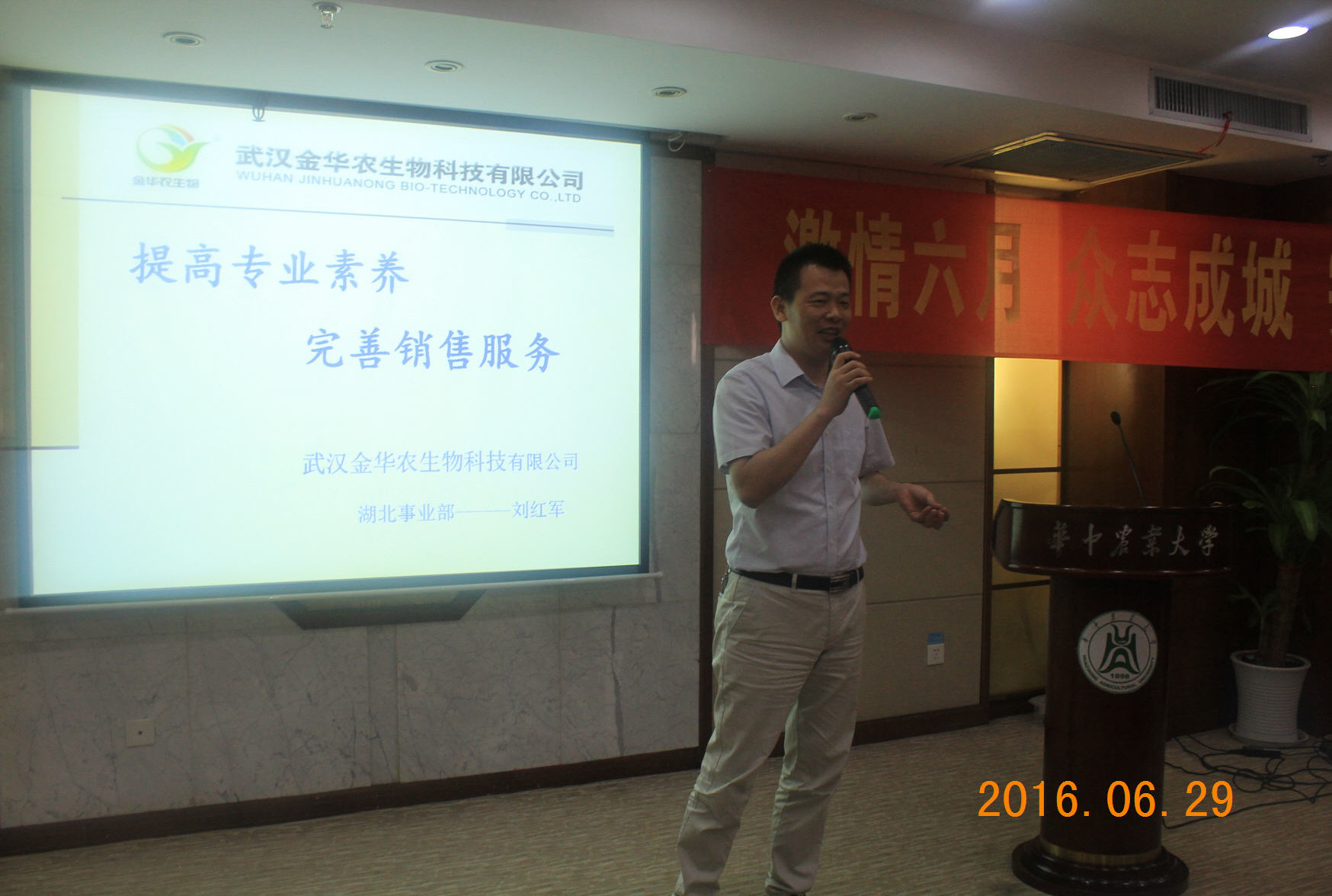 6月28日至30日,武漢金華農公司2016年上半年工作總結會議召開,公司將全員學習、拔高進步、強技能、優思想列為員工成長的重點要素,開展了從專業知識到職業素養、從實踐技能到積極人生觀的全方位學習和交流,既教給全體員工對專業知識的融會貫通和實際操作,又共同探討目標達成的具體分解實施辦法,大家受益匪淺。