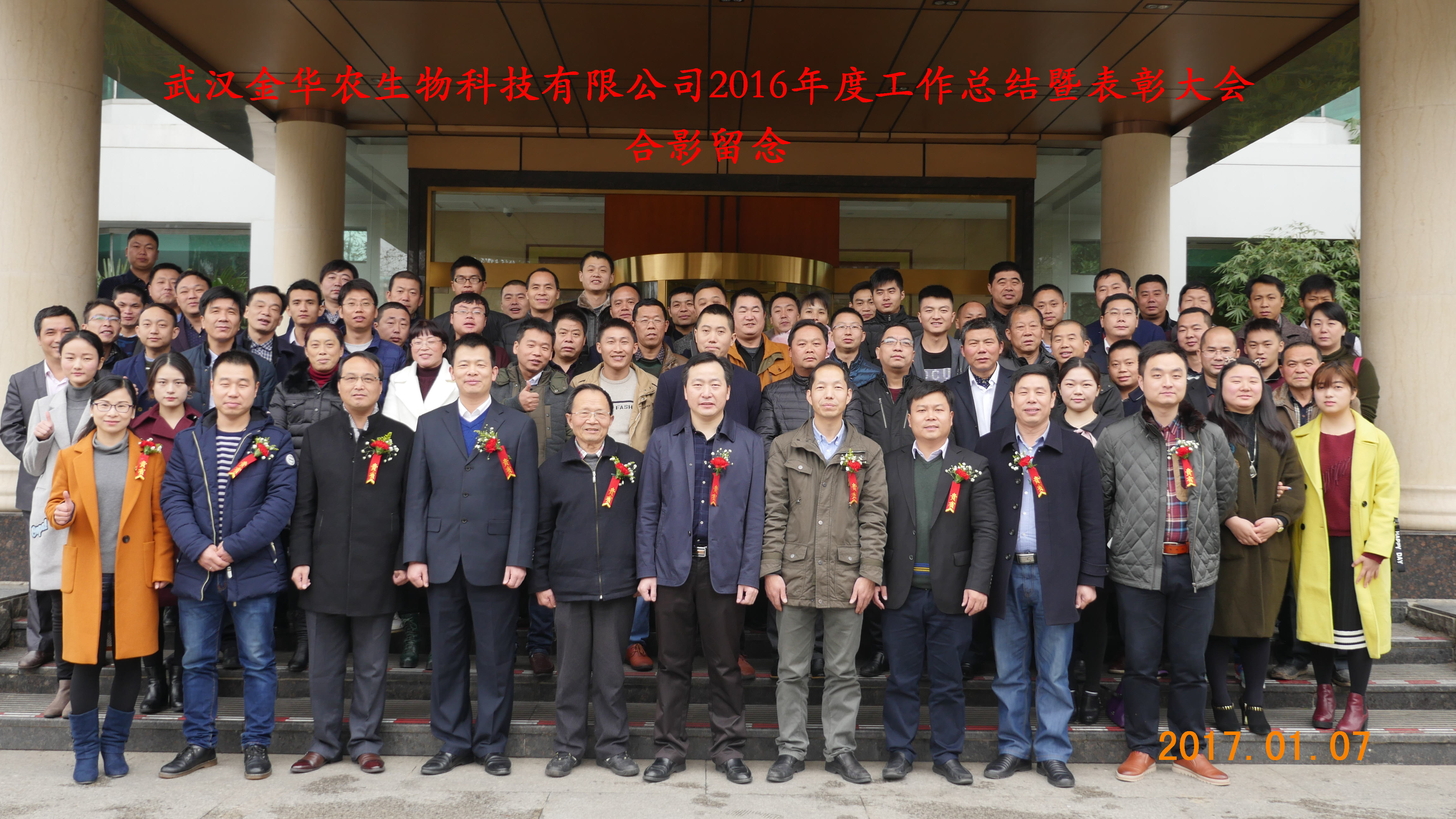 2017年1月6日至9日,武漢金華農生物科技有限公司2016年終工作總結暨表彰大會在華中農業大學隆重召開,學校院系領導、博士生導師、教授專家、公司高層、全國精英代表齊聚年會總結經驗、表彰先進、規劃未來。