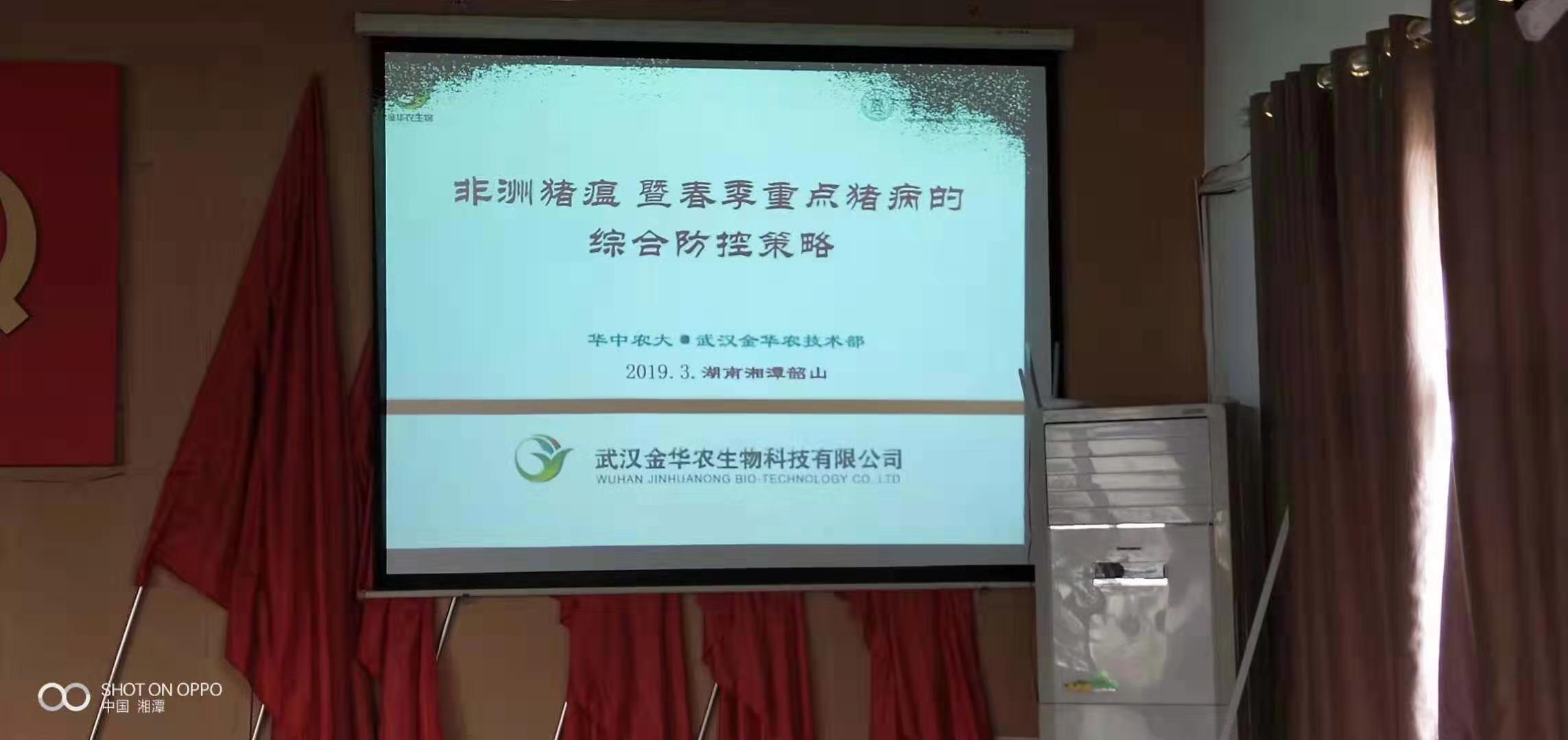 ? ?本站訊(小麗、馬楠)2019年3月11日,武漢金華農生物“春季豬病防控暨非洲豬瘟研討會”在湖南韶山銀田鎮政府會議室勝利召開,公司運營部郭昌盛老師出席會議,技術部吳志良老師主講,技術部原金記老師跟蹤拜訪,湖南大區經理胡簇經理全權組織與策劃!