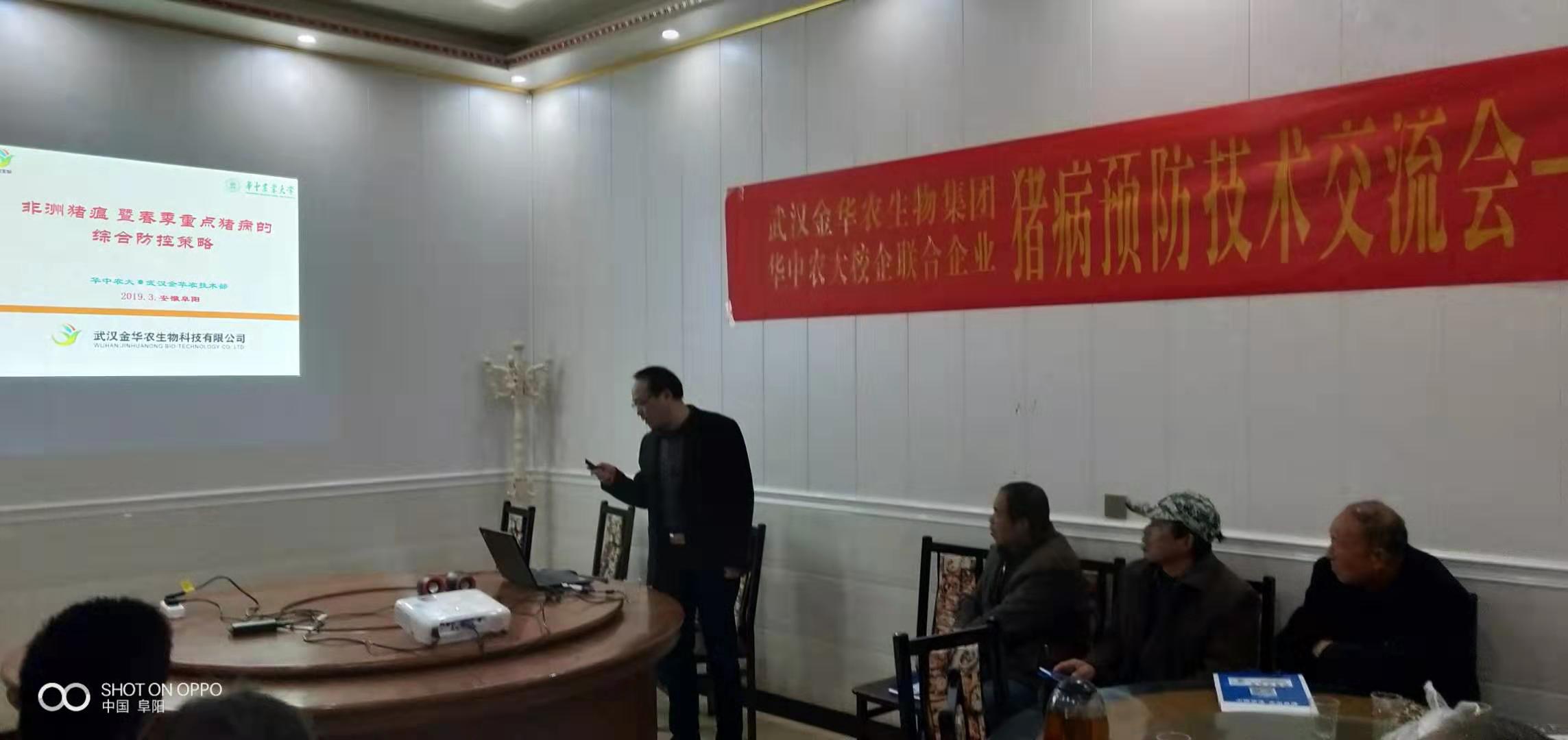 2019年3月15日,武漢金華農生物集團安徽省第3場“豬病圓桌會議”在安徽省潁上縣勝利召開,圓桌會議,形式多樣,內容新穎,學習輕松,效果明顯,當地養豬戶一片叫好聲!感謝安徽養豬戶的信任與贊美!好獸藥,武漢金華農造!!