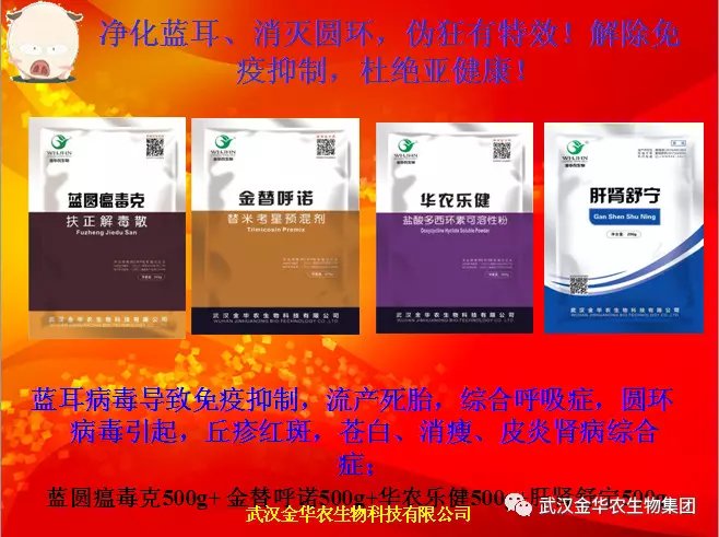 會議主題2:春季“驅蟲”,防控凈化“五體”,殺滅“細菌”,非常關鍵,最好季節是3~4月份。春季驅蟲,防控五體“附紅體、弓形體、支原體、衣原體、螺旋體”,殺滅一細菌“鏈球菌”很關鍵,豬群出現,返情,配不上種,受孕率低,毛孔出血,眼屎,淚斑、尿黃,糞便干燥,皮毛粗糙、雜亂,食欲不振,喝臟水,流產,死胎:附優金樂500g+華農樂健500g+弓球痢康500g+伊苯佳300g,拌料1000斤,連續飼喂7-10天,臨床療效,治療效果,非常顯著。