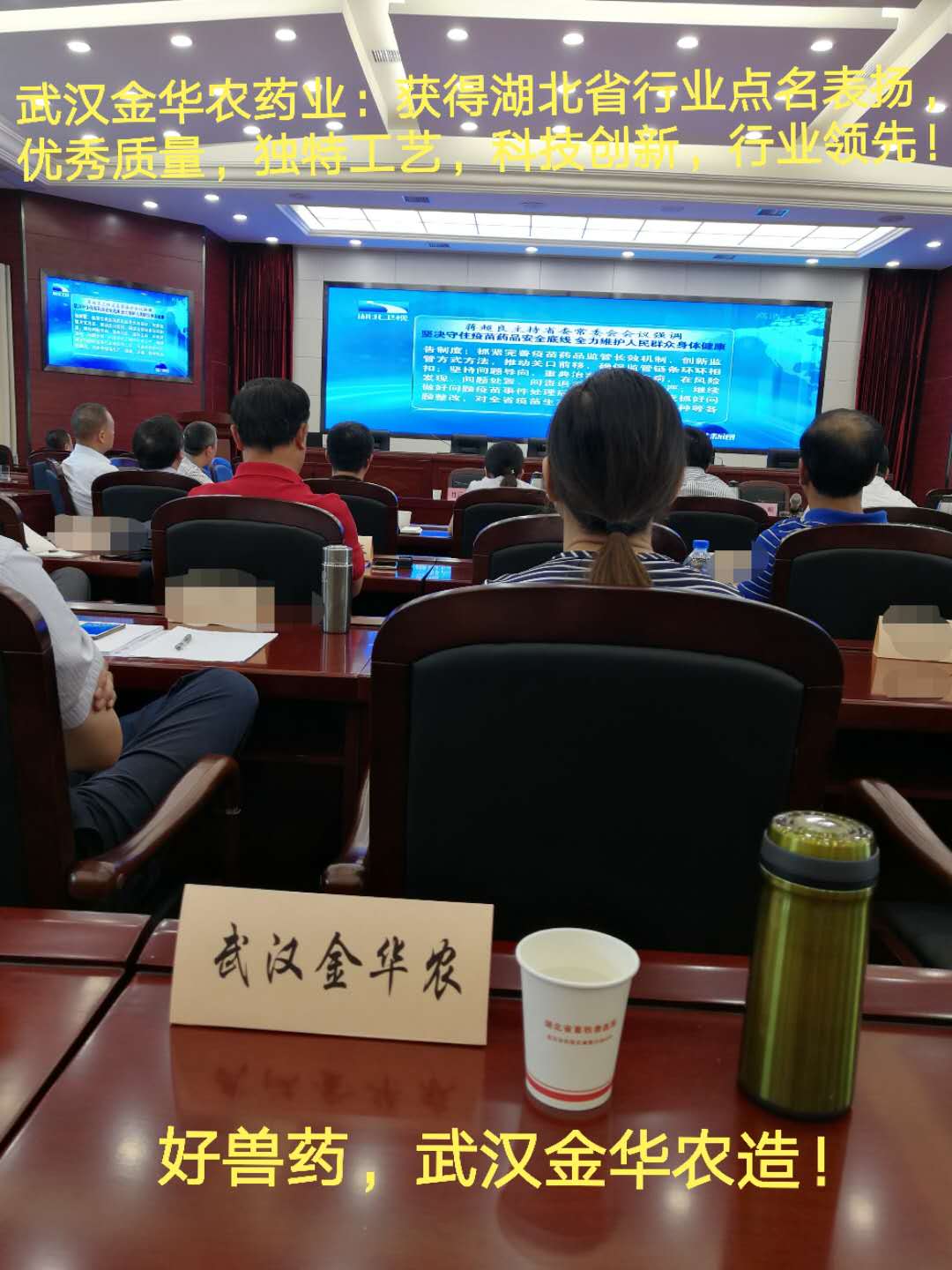武漢金華農生物科技有限公司出席并參加湖北省獸藥質量安全大會,會議學習黨中央精神,吸取深刻經驗教訓,嚴格杜絕“長春生物疫苗”,防控“非洲豬瘟”事件,會議后,行業主管領導點名表揚“武漢金華農生物獸藥”,質量過硬,工藝先進,科技創新突出!好獸藥,武漢金華農造!!