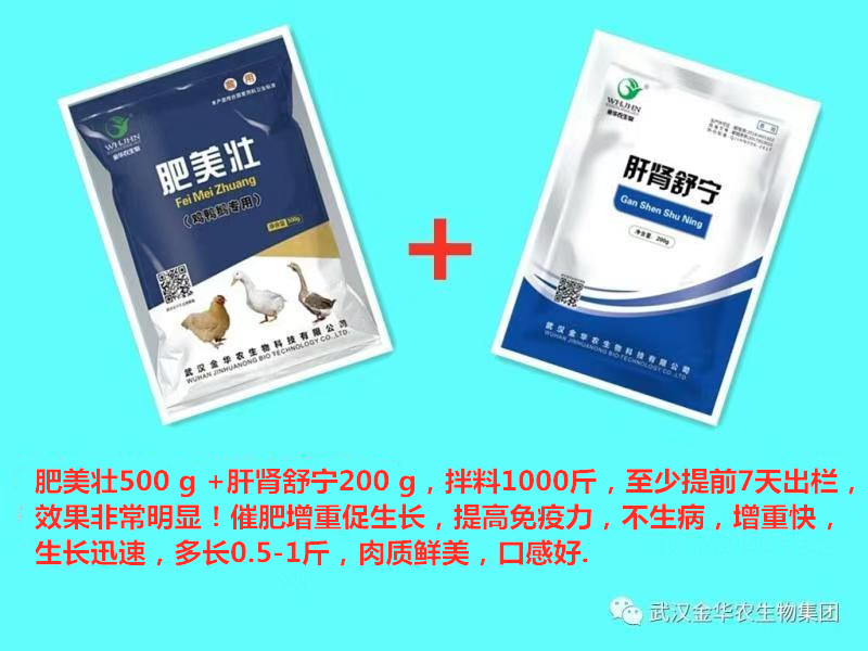 肉雞、肉鴨、肉鵝(家禽),催肥增重促生長,提高免疫力,不生病,提前出欄,從開口吃料開始飼喂,一直到出欄為止,皮紅毛亮,屁股變大,后腿變粗,食欲增加,四肢粗大,軀干豐滿,增重快,生長迅速,多長0.5-1斤,至少提前7天出欄,肉質鮮美,口感好:肥美壯500 g +肝腎舒寧200 g,拌料1000斤,效果非常明顯!