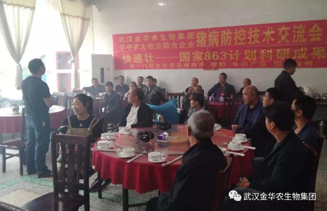 2020年5月15~18日,武漢金華農生物集團“夏季豬病防控技術交流圓桌會”暨“快速壯”“肥豬增重促生長,母豬提免增奶”成果交流在湖南益陽勝利召開,這是公司2020年第一次連續3場豬病防控會議,取得圓滿成功!科技下鄉到村,以養豬示范村為單位,開展豬病防控知識普及,武漢金華農生物開創新模式!來自當地的20位豬場養殖領頭人,與公司技術專家姚教授,趙教授,技術指導原老師,湖南大區負責人張經理,開展了專項座談交流會議。